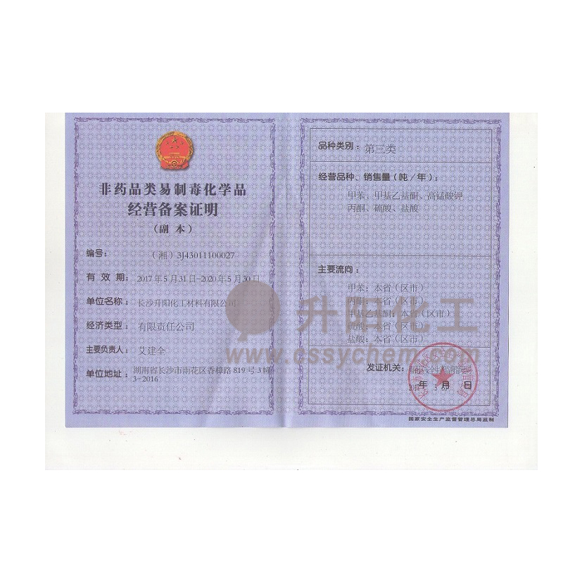 我公司具有危險化學(xué)品經(jīng)營許可證,易制毒和易制爆的經(jīng)營許可,現(xiàn)經(jīng)營銷售第二類、第三類易制毒,易制爆等危險化學(xué)品,我司對危險品購買嚴格按照國家規(guī)定實施,對所有易制毒,易制爆等一律不對個人銷售??蛻糍徺I以上危險化學(xué)品,需要提供相關(guān)公司資質(zhì)及備案資料,待我司審核后方可購買,具體說明如下:購買手續(xù):一、易制毒